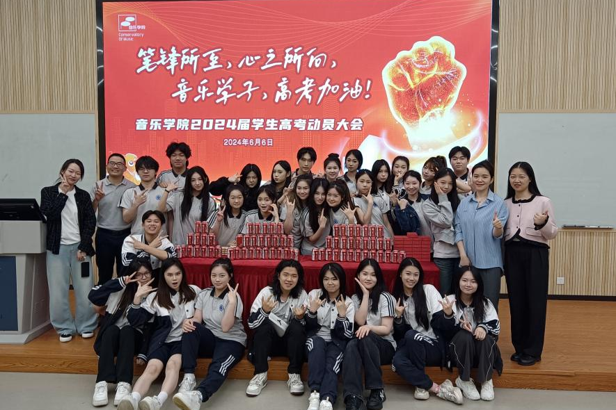 6月6日中午,音樂學(xué)院舉行了“音樂學(xué)院2024屆學(xué)生高考動員大會”,為考生們加油鼓勁,振其士氣,篤其信念。音樂學(xué)院黨總支副書記劉夢偉主持,附中教研室主任段廉、音樂劇和現(xiàn)代音樂教研室主任錢思舒,音樂學(xué)院輔導(dǎo)員張婧琦,高三班主任鄭難力、鮑燊超及高三年級全體學(xué)生參加本次會議。