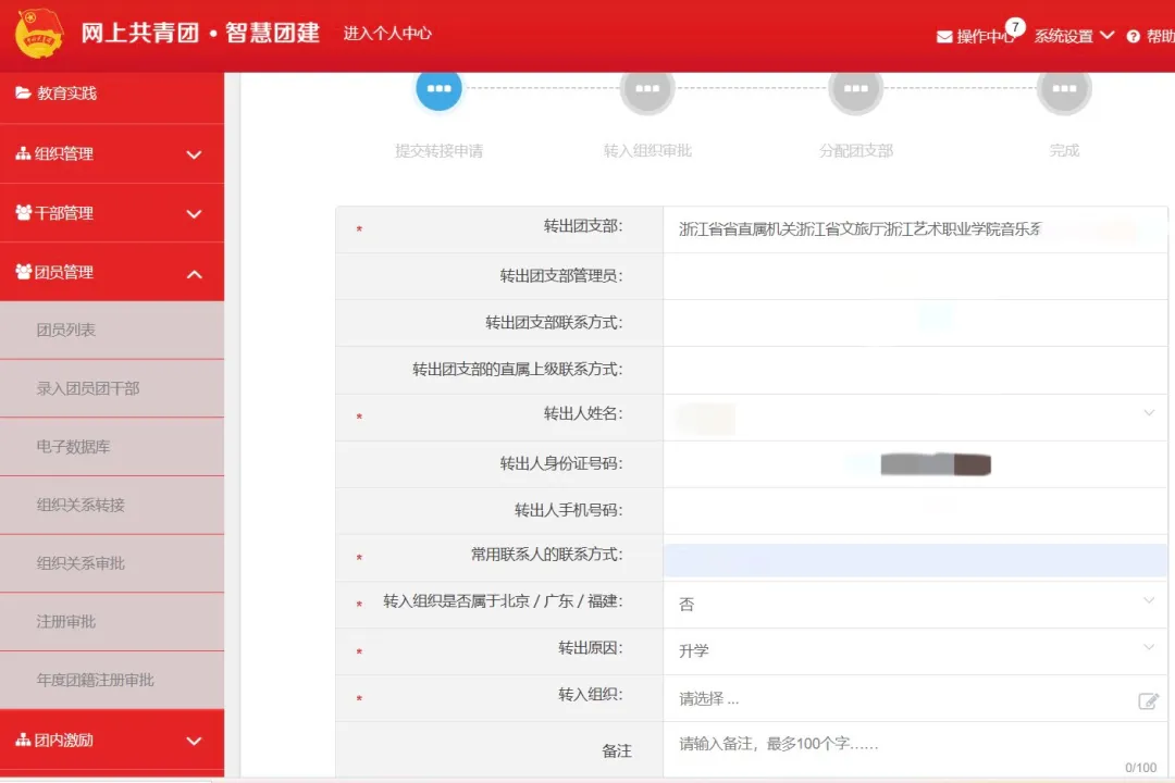 進行個人團組織關系轉接