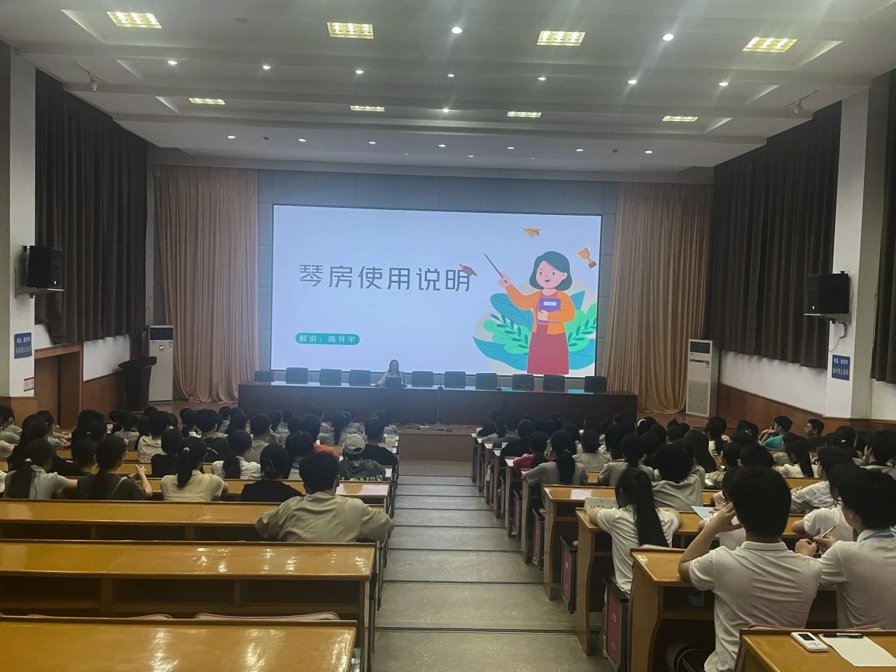 琴房是音樂(lè)學(xué)生提升專業(yè)技能的主要場(chǎng)所。為幫助新生了解琴房使用規(guī)則并高效利用琴房,9月7日晚,琴房管理室陳開(kāi)宇老師為新生詳解了琴房使用流程和要求。