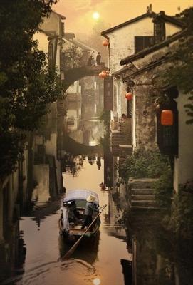 最忘不了的還是江南的水,水漾橫斜影。傍河而居的水鄉(xiāng)人家,遠(yuǎn)離都市的塵囂與浮躁,任陽(yáng)光在肌膚上靜靜流淌,任詩(shī)意在心間輕舞飛揚(yáng)。有河就有橋,那彎彎拱形的小橋傾斜在清澈的水面,或優(yōu)雅別致,或玲瓏飄逸,已磨損的雕欄印著歲月的痕跡,與古鎮(zhèn)風(fēng)韻融為一體。夕陽(yáng)余輝,暮色把小鎮(zhèn)包裹成一片青色,一幅濃烈的水墨畫(huà)展現(xiàn)在我面前。此時(shí),古鎮(zhèn)的生機(jī)也在裊裊炊煙和微弱的燈光中盡顯。