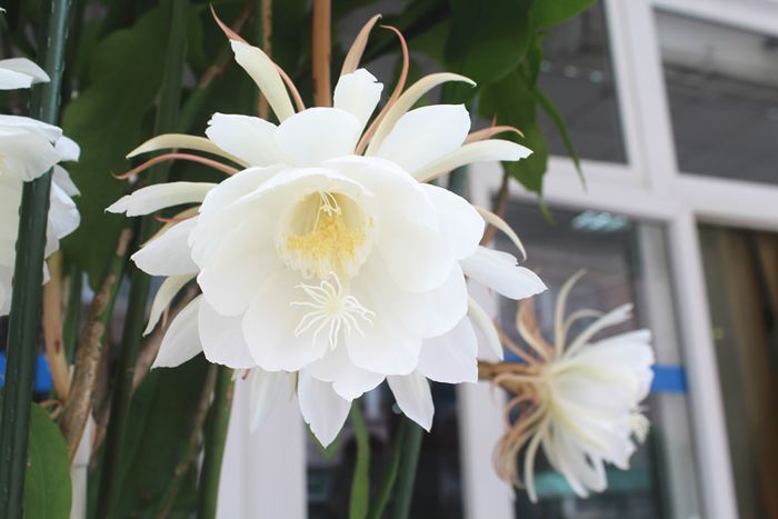近日,在浙藝院一樓食堂展臺(tái),我們顛覆了電影中的畫(huà)面,有幸在白天看到了清新素雅的曇花。這盆曇花以飽滿的姿態(tài)盛放著,開(kāi)放數(shù)達(dá)到8朵,甚至還有2個(gè)含苞欲放的花苞。許多路過(guò)的師生停下腳步,紛紛上前觀賞這盆神奇美麗的曇花,時(shí)不時(shí)還有人拿出手機(jī)來(lái)拍照。這盆曇花出自哪位高手?他就是我院基礎(chǔ)教學(xué)部退休教師徐洪江。