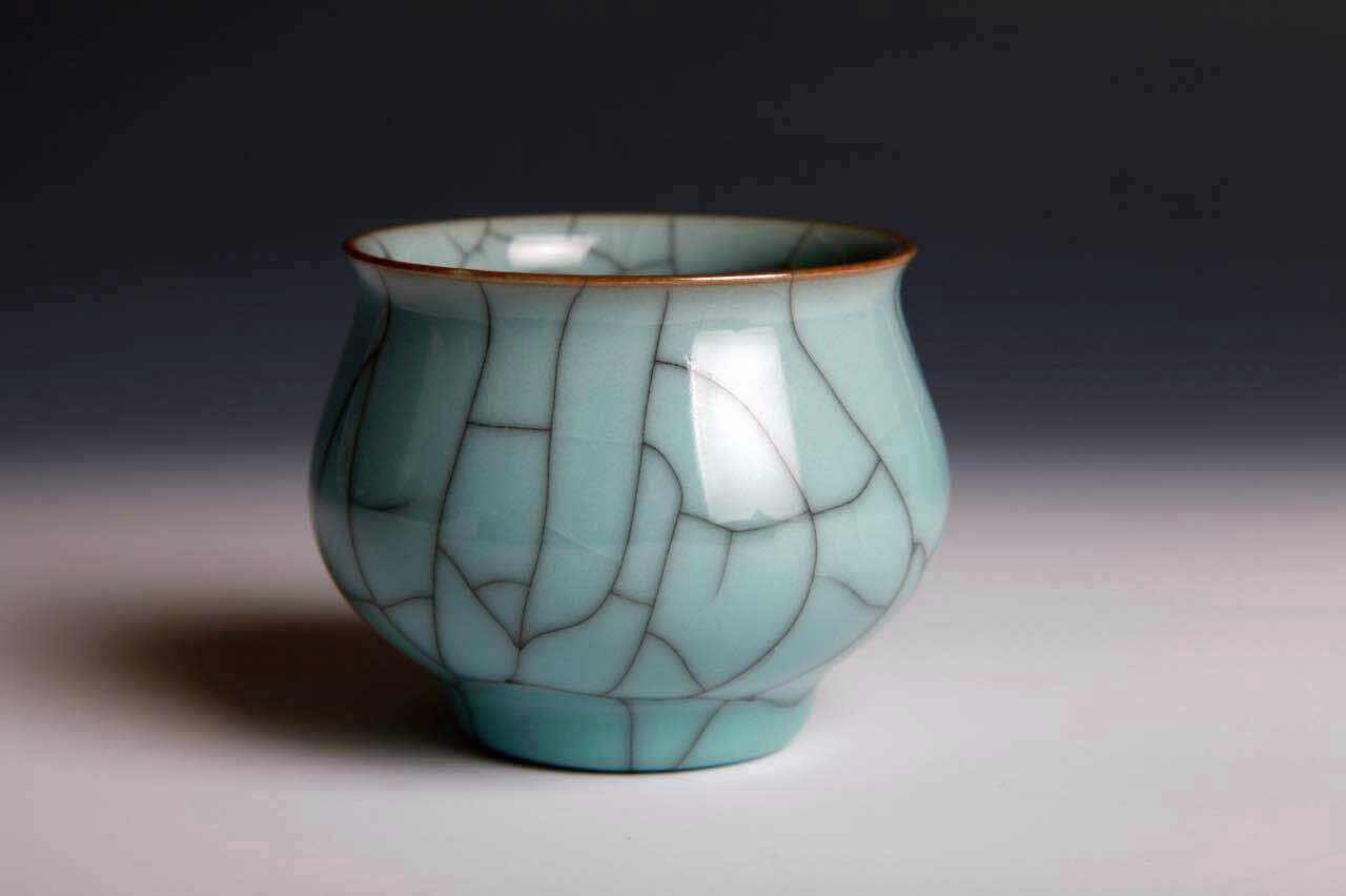 楊勇每天雜事眾多,晚上忙完依然要直奔工作室,釉料的排列組合千變?nèi)f化,每次這樣忙到了凌晨,才是楊勇真正滿足睡下的時刻。當一個新的釉料配方出來,他都要在一個小瓷片上簡單描摹,批注編號。這種小瓷片,景德鎮(zhèn)人俗稱“照子”,也就是我們說的小樣。從業(yè)三十三年,楊勇的“照子”也燒制了幾十萬個。他說身邊的朋友抽煙打牌是癮,他這也是癮,每次成功復燒了一種古瓷器,或者創(chuàng)新了一種新釉料,都能帶給他無上的精神享受。也就是在今年,楊勇完成了三個突破:一個是傳承,將失傳兩百多年的哥窯魚籽紋復燒成功;兩個是創(chuàng)新,在高溫電光釉和紫金釉(古銅釉)的基礎(chǔ)上創(chuàng)新了古銅裂紋釉。說到這個,楊勇顯得很是自豪。
