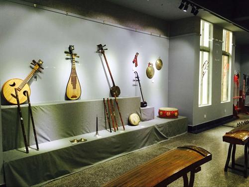往里走,古箏、古琴、琵琶、二胡、嗩吶、蕭、鑼鼓等擺放的錯(cuò)落有致,禁不住摸了摸古箏,撥動(dòng)了它的琴弦,喲!這音色!可真有味道啊!