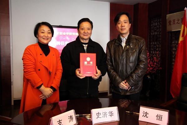 2017年11月28日下午,浙江藝術(shù)職業(yè)學(xué)院戲劇系聘請史濟(jì)華擔(dān)任戲曲表演專業(yè)特聘教授聘任儀式在戲劇系會議室舉行。浙江藝術(shù)職業(yè)學(xué)院黨委委員、副院長沈恒向他頒發(fā)聘書,簽訂特聘教授協(xié)議。