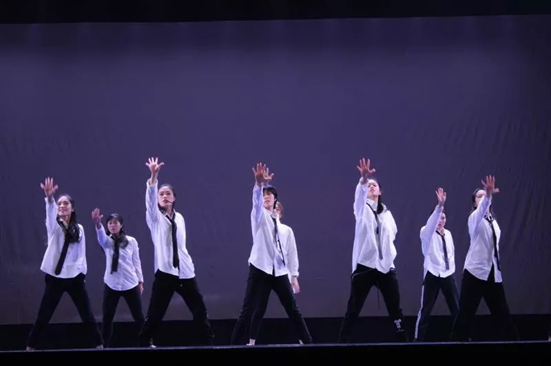 18級(jí)演藝班女生基訓(xùn)組合表演,伴隨著中前段舒緩的音樂(lè),同學(xué)們以情緒帶動(dòng)身體,動(dòng)作優(yōu)美舒展,后段音樂(lè)動(dòng)感,又釋放出青春活力。《茉莉花》中,同學(xué)們恰似茉莉花瓣一般,以變化的隊(duì)形和動(dòng)作組成一朵盛開(kāi)的茉莉花。男生基訓(xùn)組合以挺拔的身形、堅(jiān)定的眼神和干凈利落的動(dòng)作、鏗鏘有力的口號(hào),表現(xiàn)出青春男孩身上的陽(yáng)光與熱情。