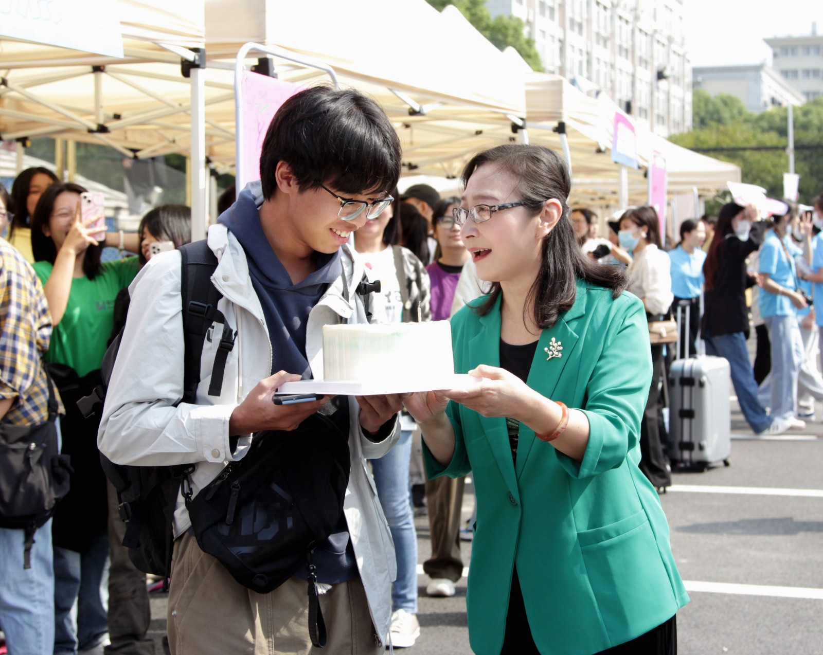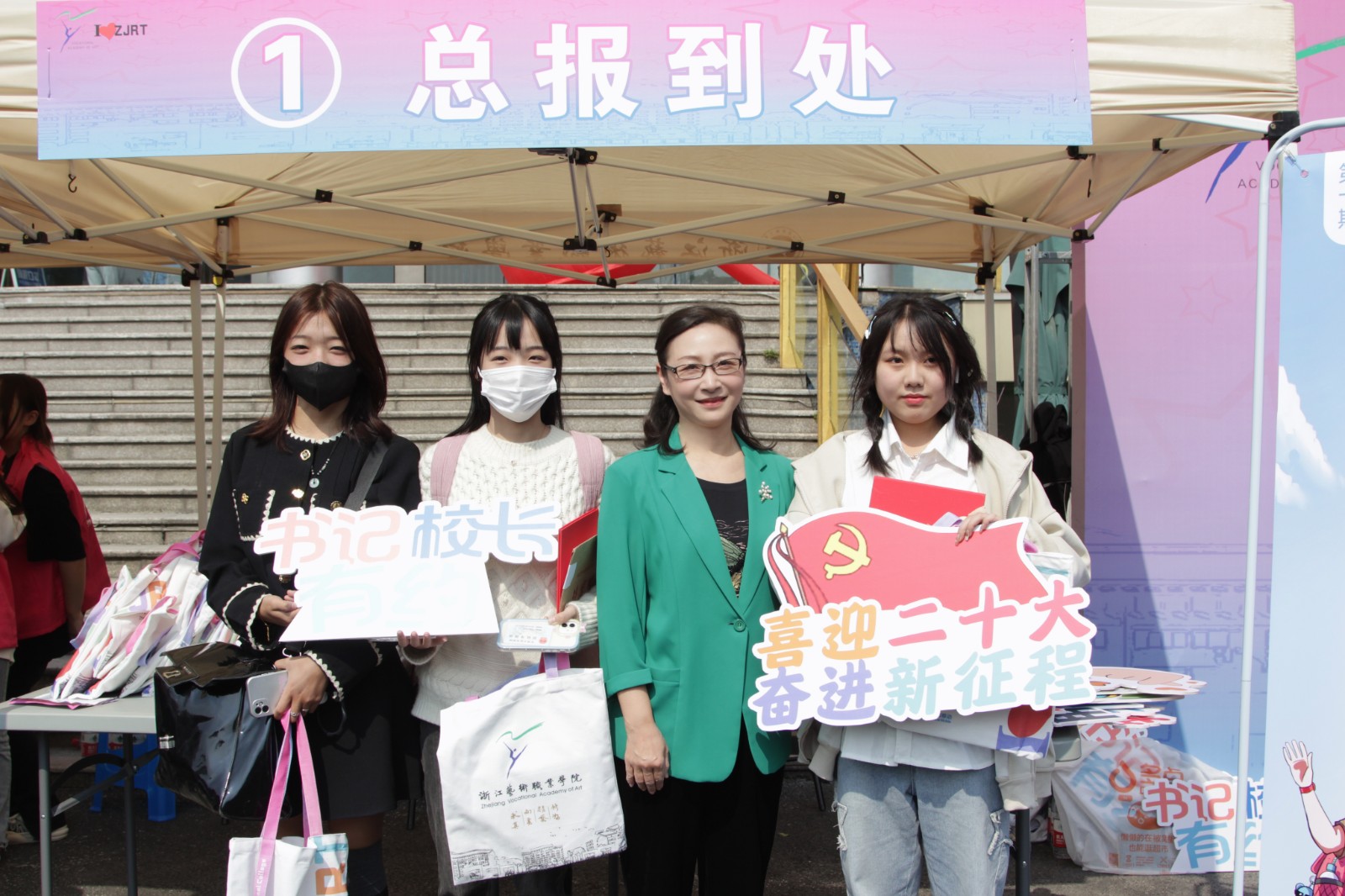 結(jié)合新生報(bào)到,學(xué)校舉行第十期書記校長(zhǎng)有約活動(dòng)。浙藝黨委書記薛亮,院長(zhǎng)、黨委副書記黃杭娟,黨委副書記夏開堂,黨委委員、副院長(zhǎng)沈軍甫來到報(bào)到現(xiàn)場(chǎng),對(duì)工作人員表示慰問,為新生發(fā)放新生大禮包,為到來的新生送上祝福,加油鼓勁。