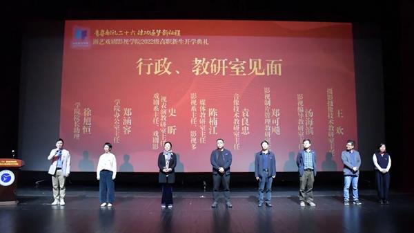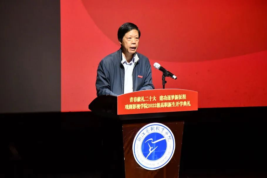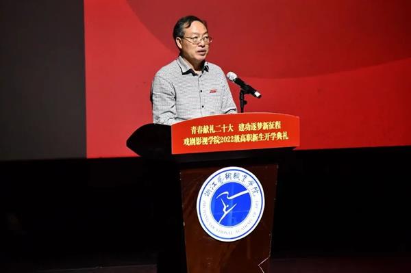 10月20日,戲劇影視學(xué)院2022級新生開學(xué)典禮在浙江藝術(shù)實驗劇場舉行。浙江藝術(shù)職業(yè)學(xué)院黨委委員、紀(jì)委書記徐芳,戲劇影視學(xué)院黨總支書記彭云波,副院長(主持工作)那剛,常務(wù)副院長鄭怡文,院長助理徐旭恒,辦公室主任鄭涵容,各專業(yè)教研室主任,行政教輔老師和全體新生班主任出參加典禮。開學(xué)典禮由學(xué)院黨總支專職副書記許瑛主持。