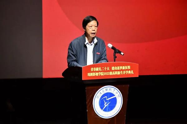 徐芳代表學(xué)校歡迎2022級新生,他以“生逢盛世當(dāng)不負(fù)盛世,生逢其時當(dāng)奮斗其時”為題指出,延續(xù)67年黃龍文脈的浙江藝術(shù)職業(yè)學(xué)院,始終與偉大的歷史進程同生共長、命脈相連。在百年未有之大變局疊加全球疫情的當(dāng)下,浙藝學(xué)子要“昂首眺望,胸懷志存高遠”,要“俯身伏案,潛心問學(xué)求真”,要“站穩(wěn)立場,不負(fù)家國榮光”,在國家推進文化強國建設(shè)、文化和旅游融合、職業(yè)教育改革發(fā)展、教育國際化的宏大語境中鍛煉成長,用青春和汗水譜寫中華民族偉大復(fù)興的美好篇章。