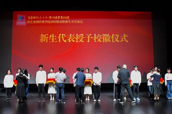 典禮上,校領(lǐng)導(dǎo)和分院領(lǐng)導(dǎo)為2022級新生代表佩戴校徽,標(biāo)志著每位新生將以“浙藝人”的身份開啟“求真 尚美 精藝 修為”的浙藝時光。