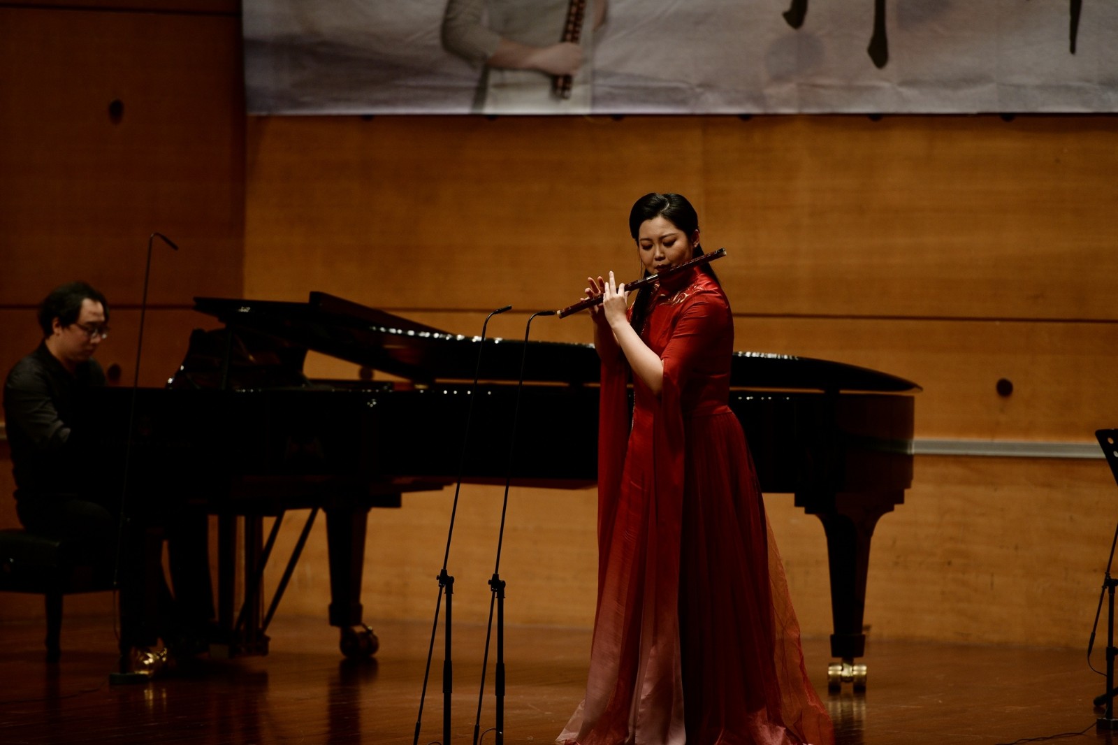 音樂會共有七首風格迥異的曲目,既有清新脫俗的“新派”作品《小放牛》和婉約細膩的南派作品《幽蘭逢春》,又有豪邁鏗鏘的北派作品《秦川情》和富有山東地域特色的《走進快活嶺》,還有富有傳統(tǒng)韻味和時代特色的作品《春風雨夜情》和《胡旋舞》。值得一提的是,常軼偉演奏了恩師戴亞教授創(chuàng)作的北派笛子作品《山野情》。