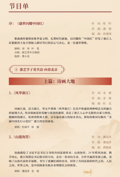 作為2021年度浙江文化藝術(shù)發(fā)展基金資助項目,這臺音樂會以浙江推進(jìn)共同富裕的實踐過程為脈絡(luò),在全校范圍內(nèi)廣泛征稿,組織音樂學(xué)院作曲理論教研室、聲樂教研室、流行音樂教研室等部門創(chuàng)作了一批反映浙江人民推進(jìn)共同富裕進(jìn)程的優(yōu)秀原創(chuàng)歌曲,以獨唱、重唱、合唱等演唱形式展現(xiàn)浙江在高質(zhì)量發(fā)展建設(shè)共同富裕示范區(qū)進(jìn)程中涌現(xiàn)出的動人故事,唱響“共同富裕看浙江”的時代強音,學(xué)習(xí)貫徹黨的二十大精神。
