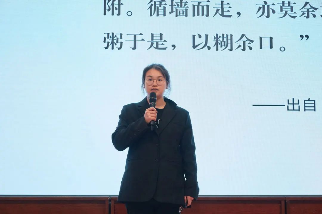 馬克思主義學院副院長胡卓群作為評委代表對本次比賽的開展給予了高度評價。她對選手們的選題、內(nèi)容、形式效果等方面進行了細致的點評與指導,同時對選手們的充分準備和精彩表現(xiàn)給予了肯定。她表示,選手們可以縮短選題范圍,繼續(xù)豐富理論知識,捋順歷史時期劃分,將典型事例照進學習生活中,切實把思想和行動統(tǒng)一到黨的二十大精神上來,寓情于黨課中,以講帶學、以學促行、自信自強、勇毅前行。
