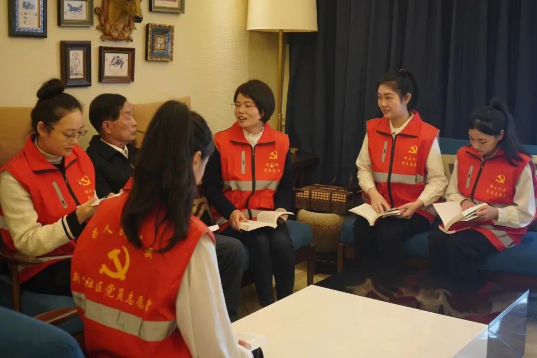 同學們和居民們圍坐在一起,通過報紙領(lǐng)讀,逐字逐句帶領(lǐng)居民學習黨的二十大報告精髓,與居民們結(jié)合報告中的關(guān)鍵與核心,談體會,話未來,暢想未來美好生活。