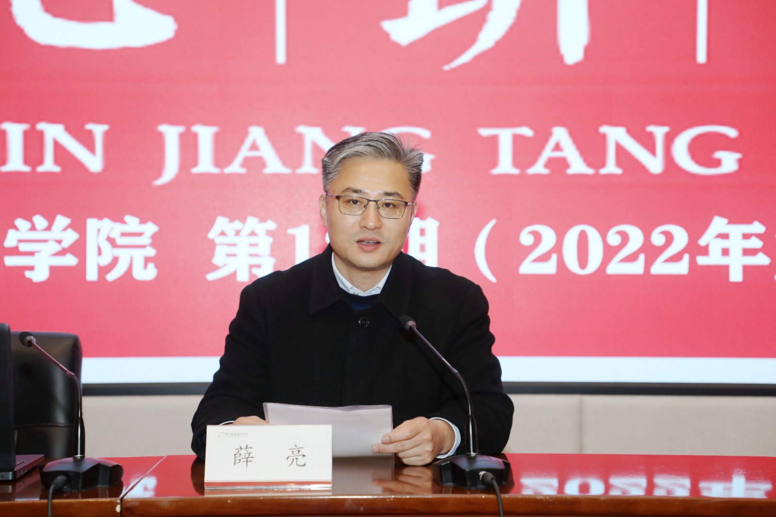11月30日下午, 浙江藝術(shù)職業(yè)學(xué)院第12期(2022年第6期)初心講堂在圖信中心報(bào)告廳舉行。校黨委書(shū)記薛亮主持。校黨委班子成員、中層干部、主管崗位人員、基層黨支部書(shū)記和思政理論課教師參加學(xué)習(xí)。