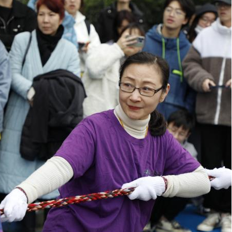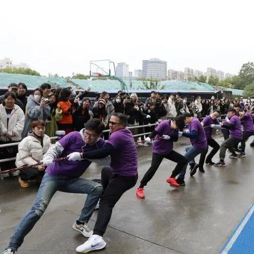 拔河比賽在現(xiàn)場熱烈高漲的氣氛中正式開始,七支隊伍按抽簽結(jié)果進行角逐。隨著比賽哨聲的響起,場內(nèi)的吶喊聲與加油聲此起彼伏,雙方隊員緊握手中的長繩,彎腰扎步,卯足勁齊心協(xié)力往后拔。場邊的老師和同學也不遺余力地為場上選手助威鼓勁,在紅繩過線的那一刻興奮歡呼,為獲勝方喝彩,也為落敗方鼓掌叫好。