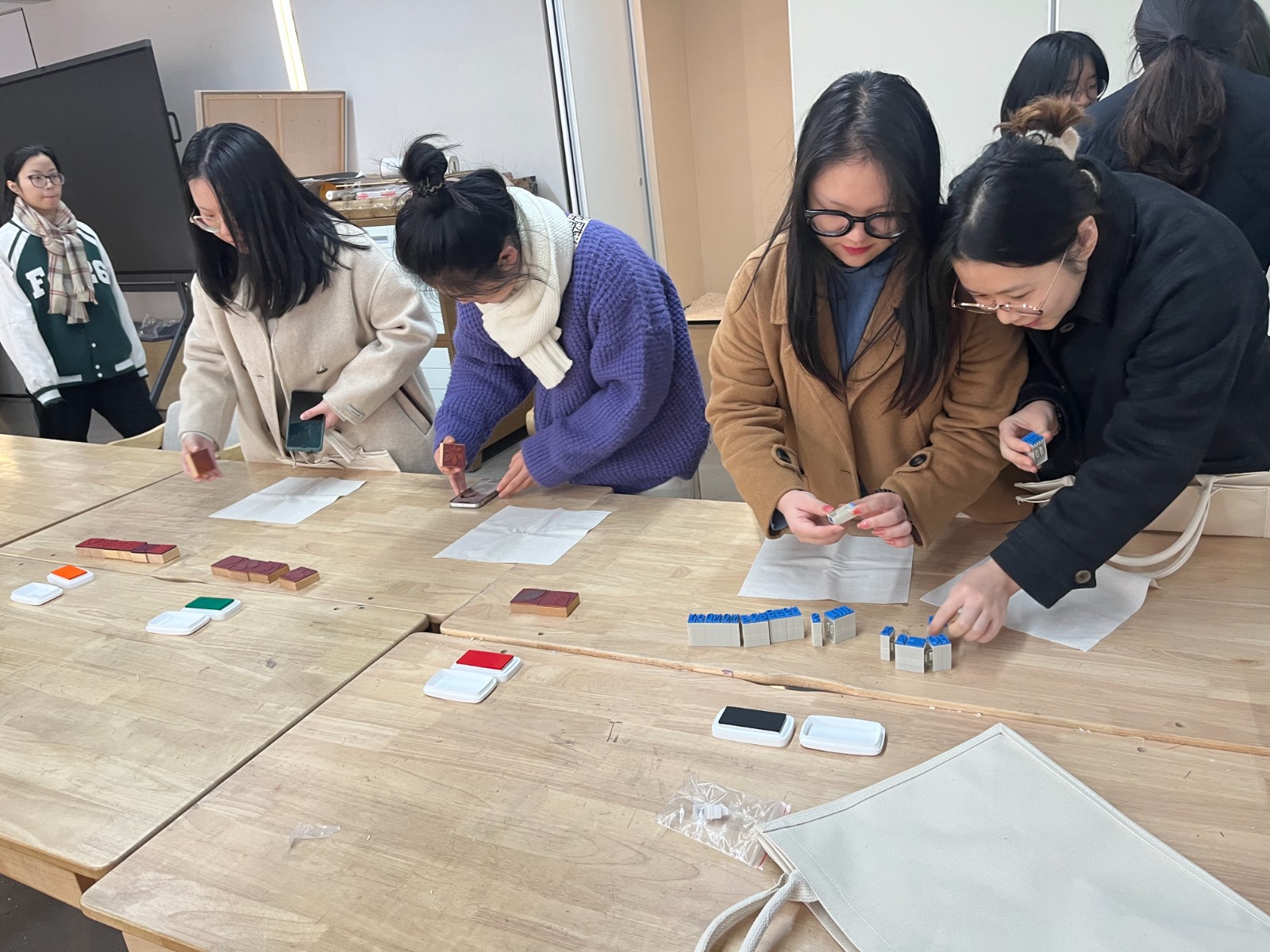 最后,高迅還向在座的同學(xué)講解了雕版印染特色、雕版印染的現(xiàn)實意義等并展示了傳統(tǒng)印染團隊做出的一些紡織創(chuàng)意產(chǎn)品,如凸版印刷的帆布包。對于紡織產(chǎn)品而言,花樣設(shè)計是重中之重。更復(fù)雜的市場訴求,使傳統(tǒng)文化創(chuàng)新化、生活化,以便它能更好的傳承發(fā)展下去。