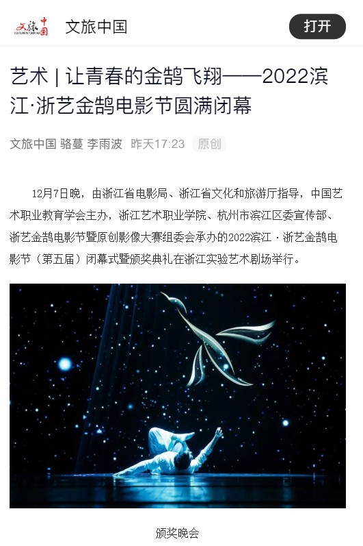 文旅中國:藝術 | 讓青春的金鵠飛翔——2022濱江·浙藝金鵠電影節(jié)圓滿閉幕