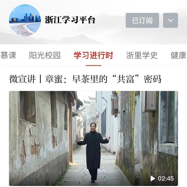 近日,學(xué)習(xí)強國里一段關(guān)于“早茶里的‘共富’密碼”的微宣講視頻點擊率持續(xù)升高,這段視頻的主講人是文教學(xué)院21屆定向班畢業(yè)生章蜜。自2021年畢業(yè)至今,章蜜便運用專業(yè)所長活躍在鄉(xiāng)鎮(zhèn)一線,為基層文化事業(yè)發(fā)展貢獻(xiàn)青春力量。