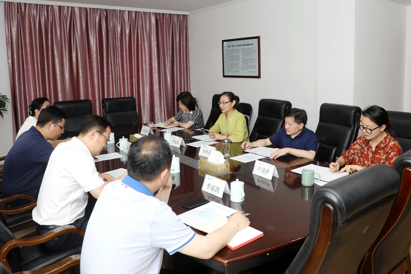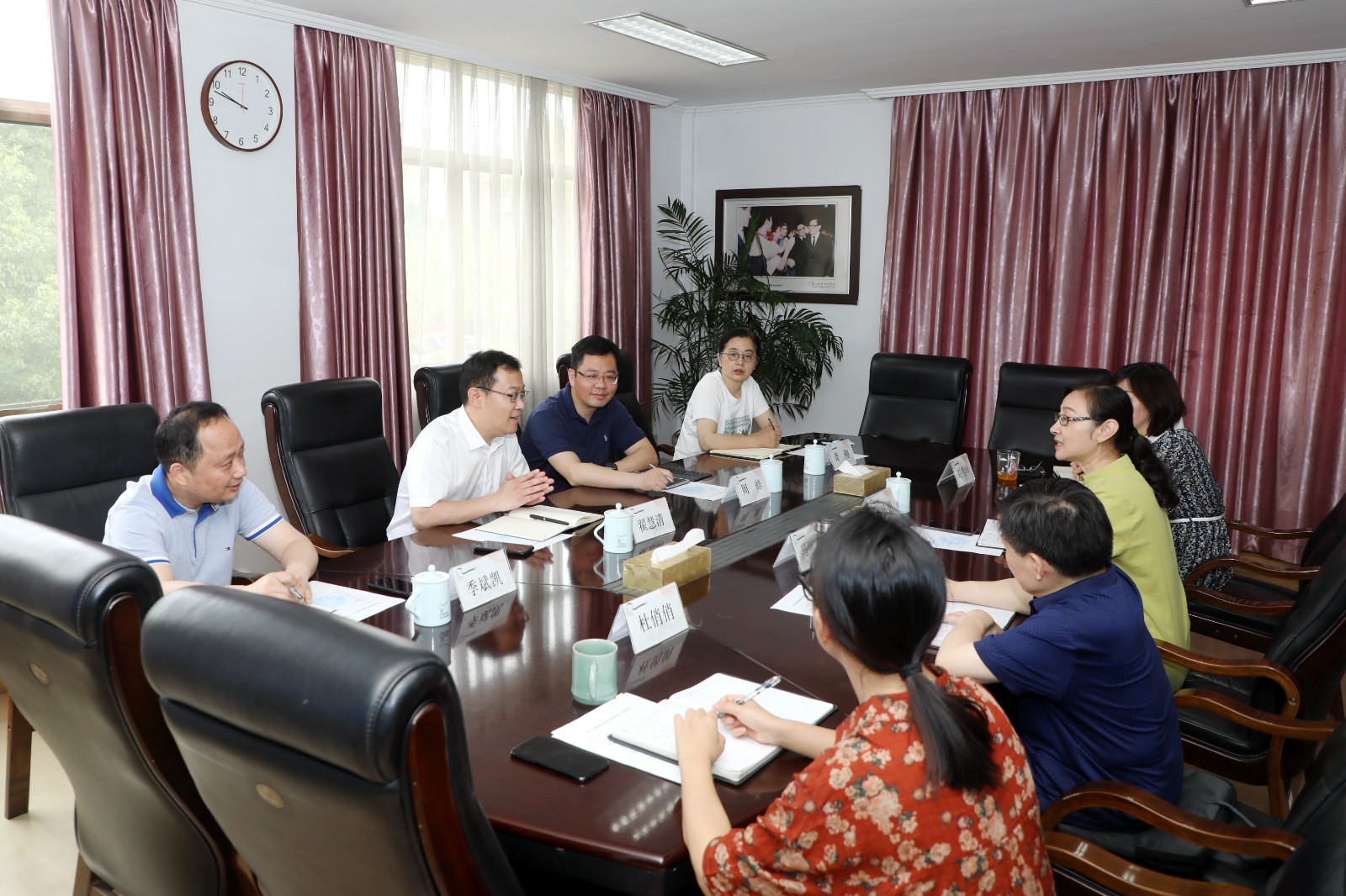 黃杭娟對翟慧清一行的到來表示熱烈歡迎,就浙藝辦學歷史、發(fā)展現狀、專業(yè)特色、人才培養(yǎng)、產教融合、服務地方和困難問題等方面作了介紹,希望區(qū)委、區(qū)政府和區(qū)委宣傳部一如既往支持關心浙藝發(fā)展,學校也將進一步強化窗口意識、前列意識,為濱江區(qū)高質量發(fā)展作出浙藝貢獻。