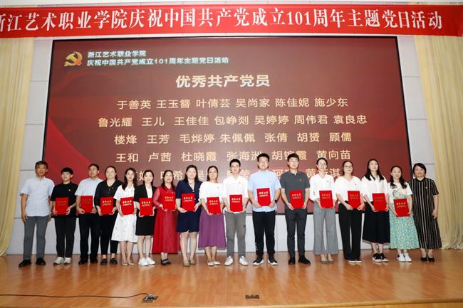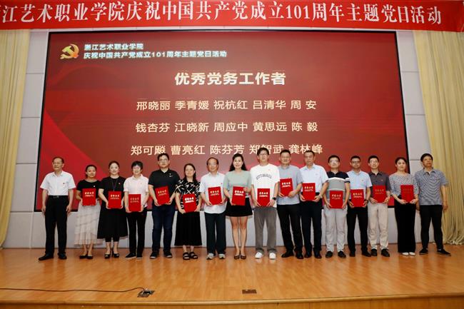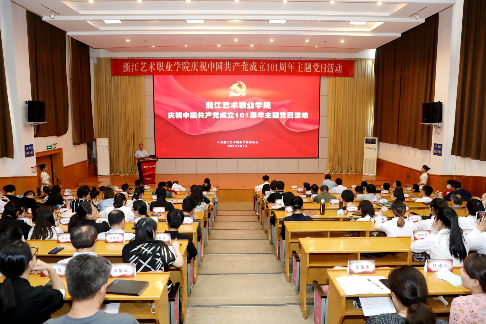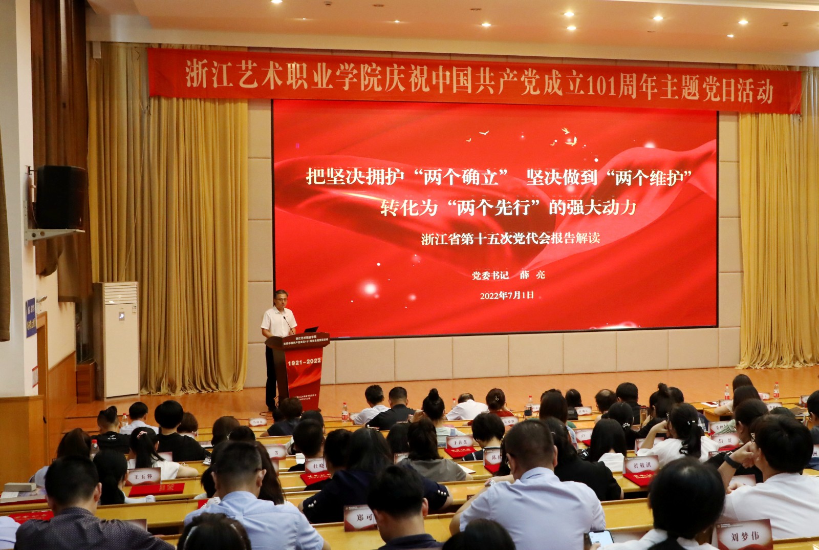 為慶祝中國(guó)共產(chǎn)黨成立101周年,回顧黨的光輝歷程,謳歌黨的豐功偉績(jī),賡續(xù)紅色血脈,浙江藝術(shù)職業(yè)學(xué)院在學(xué)校圖信報(bào)告廳隆重舉行慶祝中國(guó)共產(chǎn)黨成立101周年主題黨日活動(dòng)。校黨委班子成員,各黨總支、直屬黨支部書記、副書記,全體中層干部、主管崗位人員,基層黨支部書記、組織員和師生黨員代表、學(xué)校“兩優(yōu)一先”受表彰對(duì)象、2022年發(fā)展的新黨員代表參加活動(dòng)。校黨委書記薛亮作省十五次黨代會(huì)精神宣講,院長(zhǎng)、黨委副書記黃杭娟宣讀表彰名單,校黨委副書記夏開(kāi)堂主持活動(dòng)。