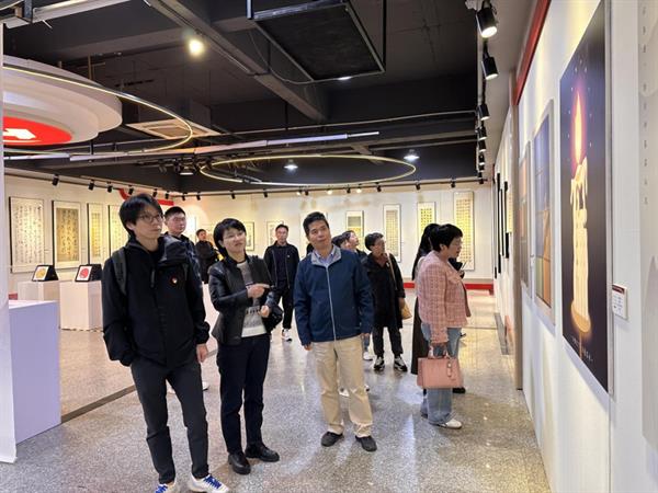 與會(huì)人員一同觀看了學(xué)校和設(shè)計(jì)學(xué)院宣傳片,并參觀了學(xué)校“凝心聚力揚(yáng)正氣·勤廉干事樹清風(fēng)”廉潔文化藝術(shù)作品展。