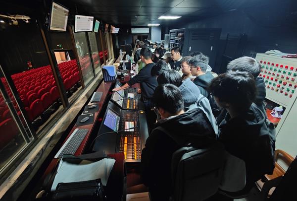 同學(xué)們在燈光老師的帶領(lǐng)下領(lǐng)略光與色之間的奧秘、三原色的巧妙運用以及燈光的靈活調(diào)節(jié),使同學(xué)們的專業(yè)學(xué)習(xí)更加貼近行業(yè)應(yīng)用。現(xiàn)場,同學(xué)們通過操作調(diào)光臺,初步體驗了燈光藝術(shù)的魅力,了解了調(diào)光的方法。