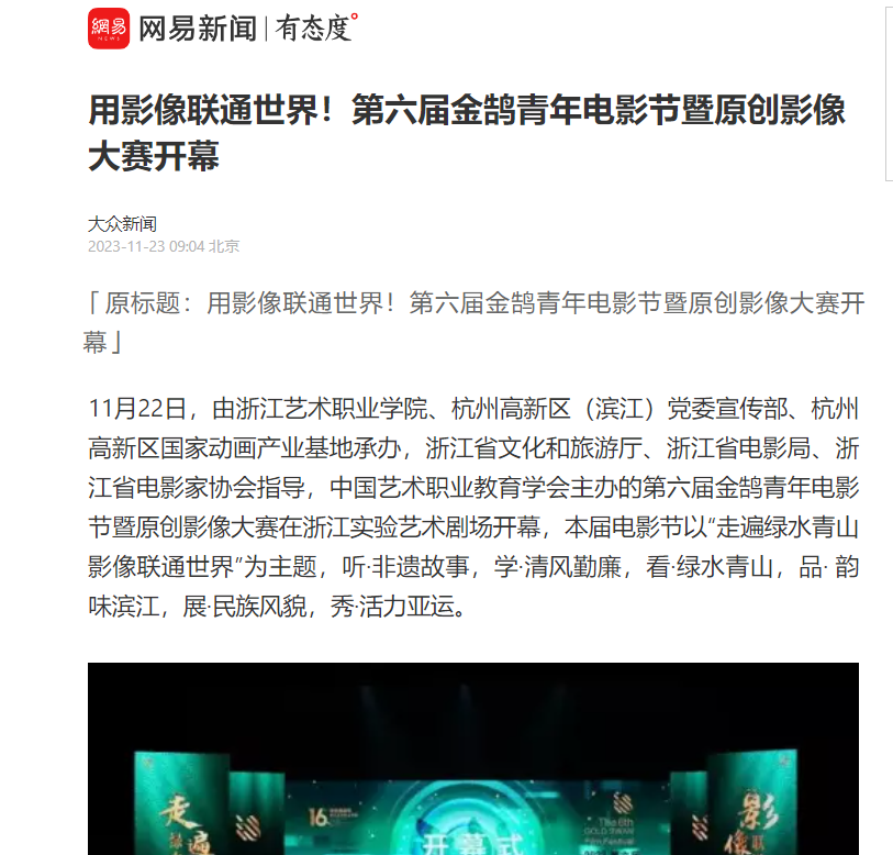 網(wǎng)易新聞:用影像聯(lián)通世界!第六屆金鵠青年電影節(jié)暨原創(chuàng)影像大賽開幕