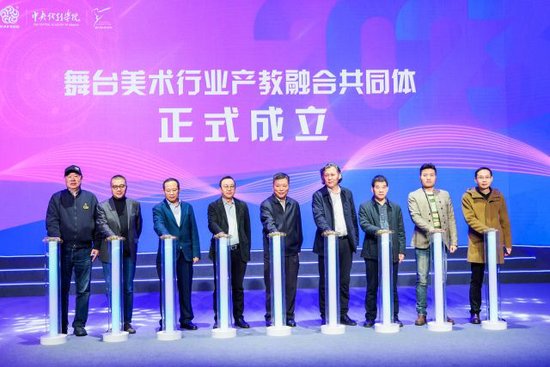 與會領(lǐng)導(dǎo)與嘉賓共同按下啟動鍵,舞臺美術(shù)行業(yè)產(chǎn)教融合共同體正式成立。大會還為共同體理事長單位、副理事長單位代表授牌。