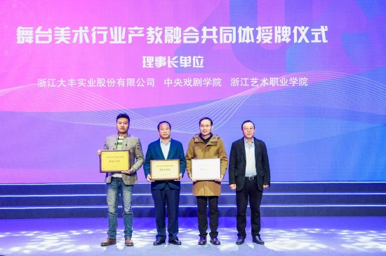 浙江大豐實業(yè)股份有限公司董事長豐華在致辭中表示,共同體的建立,為舞臺美術(shù)行業(yè)高質(zhì)量發(fā)展的人力資源和技術(shù)支撐提供了新途徑。依托共同體,浙江大豐實業(yè)股份有限公司將全方位整合產(chǎn)教資源,充分發(fā)揮在科技創(chuàng)新、人才培養(yǎng)、平臺建設(shè)等方面的優(yōu)勢,提升產(chǎn)業(yè)整體競爭力,加速推動國家數(shù)字經(jīng)濟產(chǎn)業(yè)轉(zhuǎn)型升級。