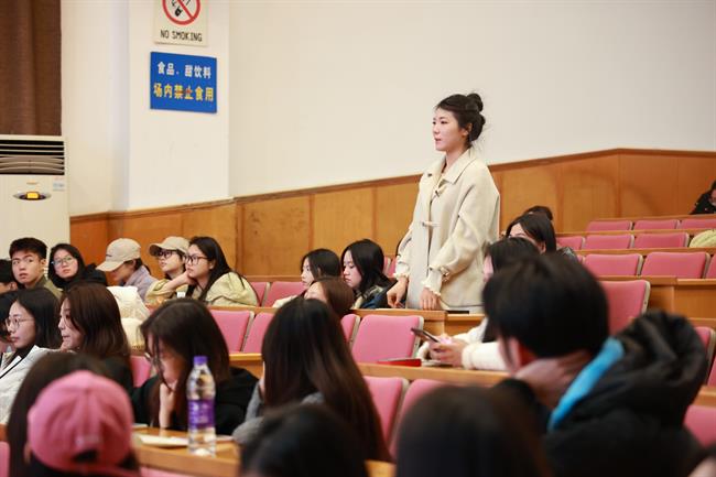 她表示,剛出道時,受到過許多質(zhì)疑與批評,但她并沒有受挫,反而勇敢地面對、接受質(zhì)疑,不斷鉆研角色、磨練演技。她建議同學們少想多做,腳踏實地,有目的地去努力。