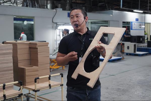 通過參觀六大車間的流水線工作,聆聽各車間負(fù)責(zé)人的詳細(xì)解說(shuō),師生們直觀地了解了一個(gè)音箱的生產(chǎn)全過程。