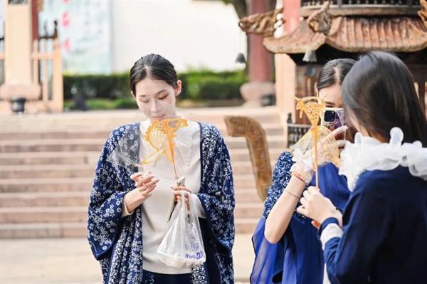 近日,戲劇影視學(xué)院時(shí)尚表演與傳播專(zhuān)業(yè)的10名學(xué)生在專(zhuān)任教師范子昀的帶領(lǐng)下,前往金華市非遺館(金華府城隍廟)參加“非凡同學(xué) 美在傳承”非遺公開(kāi)課。