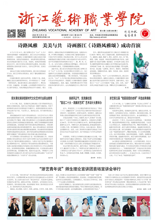 《浙江藝術(shù)職業(yè)學院報》2022 年 05 月 31 日第 5 期第 01 版(編輯:杜俏俏)獲版面類二等獎