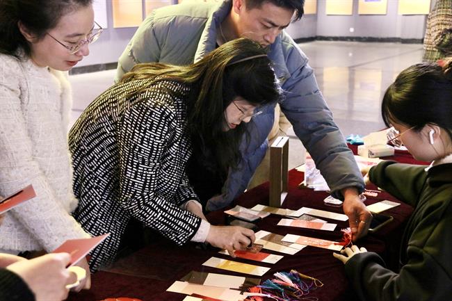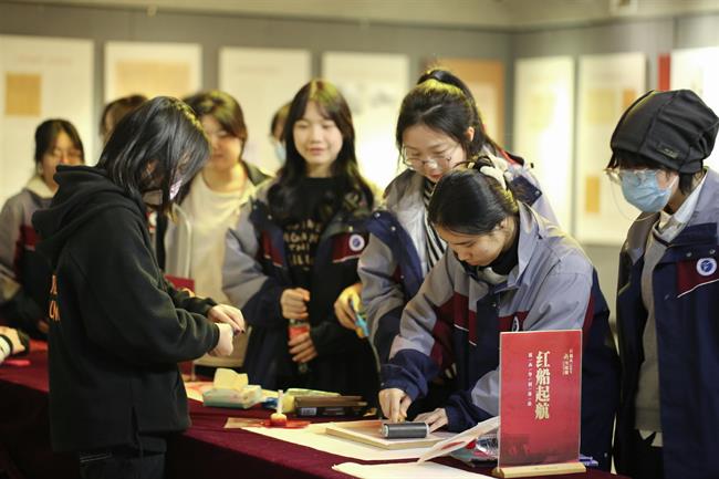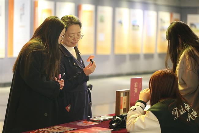 展覽中還開設(shè)了紅色文創(chuàng)專區(qū),以供廣大師生創(chuàng)作印章、書簽,拓印版畫等,通過藝術(shù)創(chuàng)作,凝聚起永遠(yuǎn)跟黨走、奮進(jìn)新征程的豪情壯志。