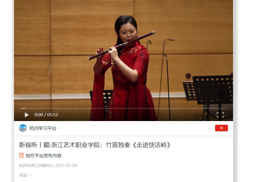 學(xué)習(xí)強(qiáng)國(guó)杭州平臺(tái):新視聽丨藏·浙江藝術(shù)職業(yè)學(xué)院:竹笛獨(dú)奏《走進(jìn)快活嶺》