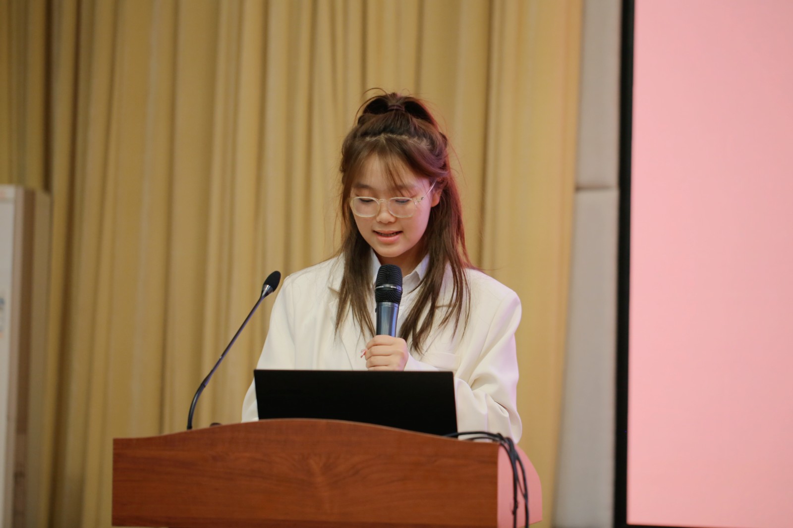 林妍潔同學從堅持讀書與求學向大家講述了讀書的益處、讀書的方法和讀書的方向。她認為要養(yǎng)成終生讀書的習慣,才能不斷積蓄力量,并將自身價值投入到黨和祖國的偉大建設事業(yè)中去。