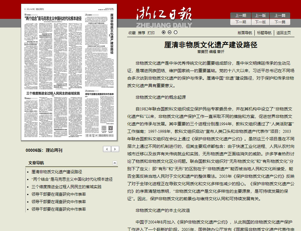 浙江日報:厘清非物質(zhì)文化遺產(chǎn)建設路徑