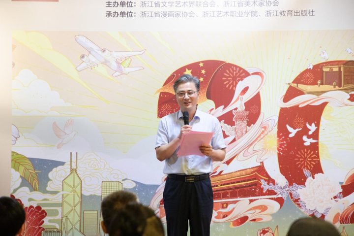 6月19日,“畫說二十大·奮進新征程”主題漫畫藝術展開幕式暨《凝心鑄魂“奮進新征程”漫畫作品集》新書首發(fā)式,在浙江藝術職業(yè)學院舉行。
