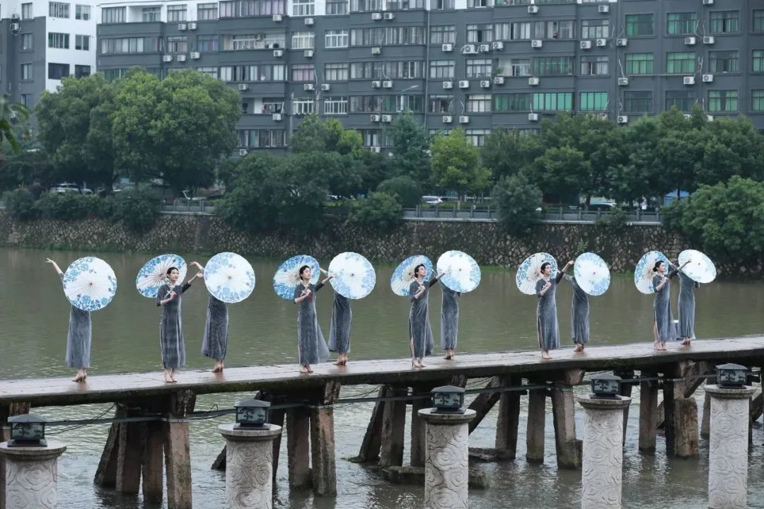 聽了葉欣然同學這一番話,飾演溪橋旗袍秀的汪施琦便忍不住也發(fā)表了自己的想法:“我們應該謹記蘇先生的教誨,好好學習專業(yè)知識、提高專業(yè)技能,為中國發(fā)展也能貢獻一份小小的力量。在來到這里之前我沒想過這座橋如此的窄,而且還要穿著高跟鞋,難免有些害怕。不過在老師的悉心指導下,我們克服了心理障礙,迅速進入狀態(tài)。走在第一個其實是有點壓力的,因為不能有差錯,步伐大小也要適中,但是現(xiàn)場的游客觀眾們都非常熱情,傳遞給我們很多動力,當看到一條條關于我們騰蛟演出的抖音刷屏的時候,滿足感、成就感、自豪感油然而生。”