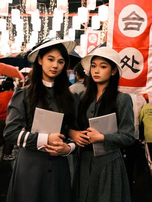 在溫州彩排和演出這兩天,大雨不斷,天氣條件艱苦,同學和老師們沒有任何怨言,依舊堅持在各自的崗位上。演出當天,細雨綿綿,游客們都撐起了雨傘,十分擁擠,同學們冒雨演出,沒有一個人退縮,四個劇組的同學們在各自點位認真演出,他們說看到觀眾為自己停下腳步被自己的表演吸引時,內(nèi)心得到了極大滿足。有不少游客爭搶著與各種各樣的民國人物進行合影,可見同學們刻畫的人物可謂活靈活現(xiàn)。