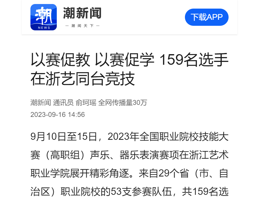 潮新聞:以賽促教 以賽促學(xué) 159名選手在浙藝同臺(tái)競(jìng)技