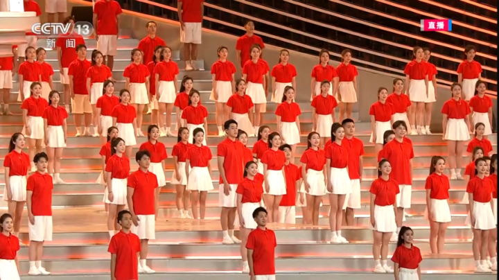 163名浙藝學(xué)子參與開(kāi)幕式演出,表現(xiàn)出色,展現(xiàn)了浙藝青年風(fēng)采。出國(guó)旗、升國(guó)旗儀式中有117位浙藝學(xué)子在主火炬臺(tái)處合唱《我愛(ài)你中國(guó)》《國(guó)歌》。