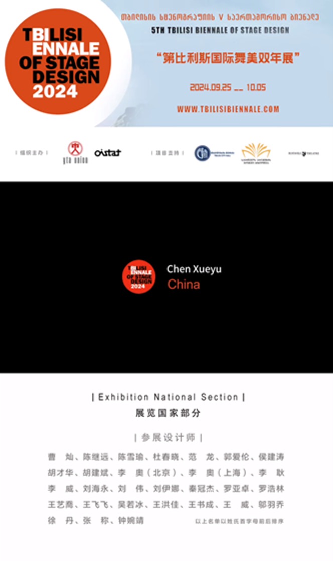 9月25日,第五屆第比利斯國際舞臺設(shè)計雙年展在現(xiàn)代藝術(shù)博物館(MOMA)- 祖拉布·采列捷利當(dāng)代藝術(shù)博物館開展。我校服裝與服飾設(shè)計專業(yè)青年教師陳雪瑜及舞臺藝術(shù)設(shè)計與制作專業(yè)優(yōu)秀畢業(yè)生陳繼遠(yuǎn)的設(shè)計作品入選2024第五屆第比利斯舞臺設(shè)計雙年展----中國國家展,并于9月25日至10月5日展出。
