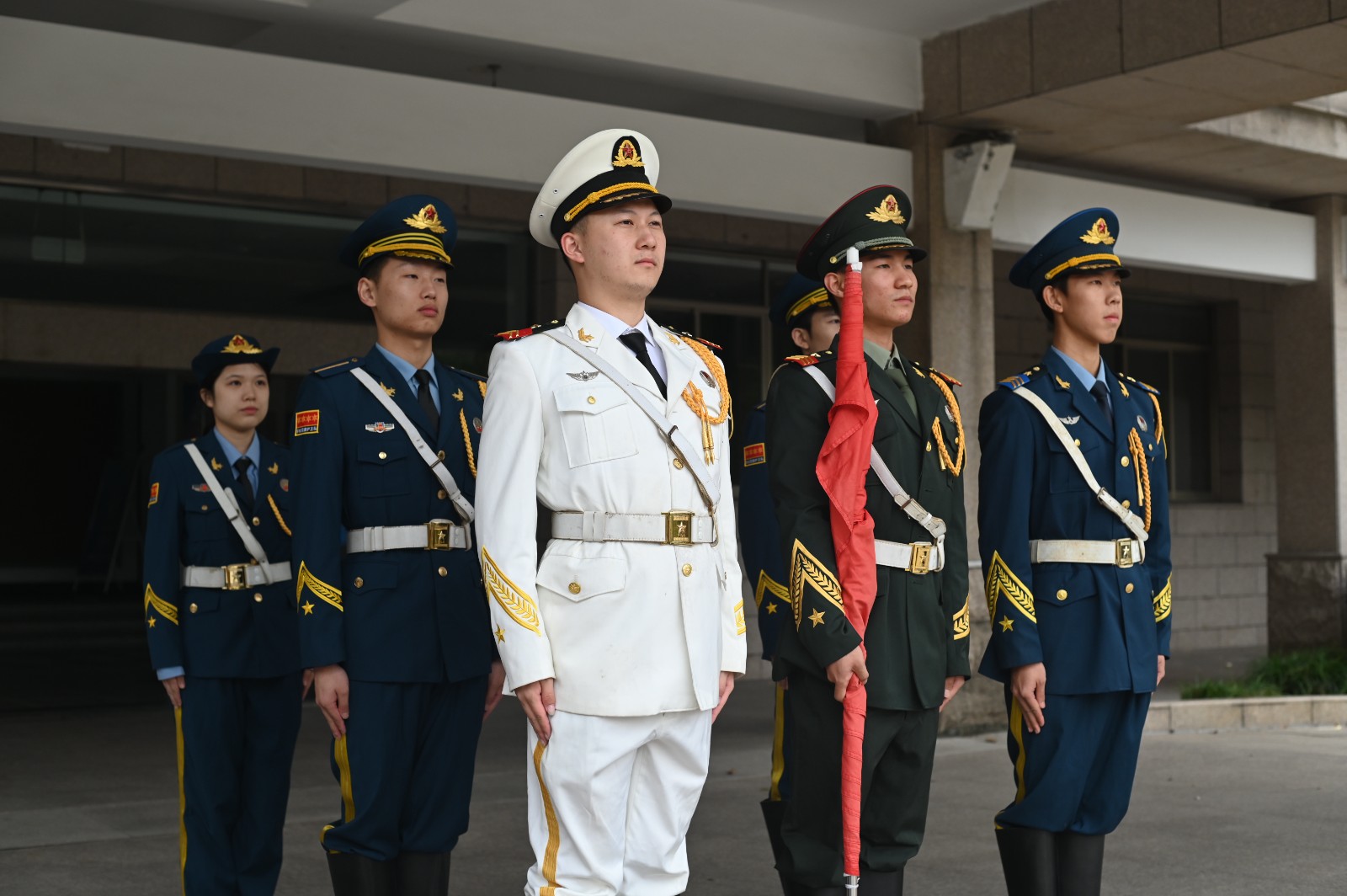 國(guó)旗護(hù)衛(wèi)隊(duì)踏著鏗鏘有力的步伐,護(hù)送國(guó)旗入場(chǎng)。伴隨著《義勇軍進(jìn)行曲》的響起,鮮艷的五星紅旗在全體師生莊嚴(yán)肅立的注目禮下緩緩升起。國(guó)歌的旋律與青春的脈搏共鳴,愛(ài)國(guó)之情在每個(gè)人心中涌動(dòng),共同表達(dá)對(duì)偉大祖國(guó)的崇高敬意。