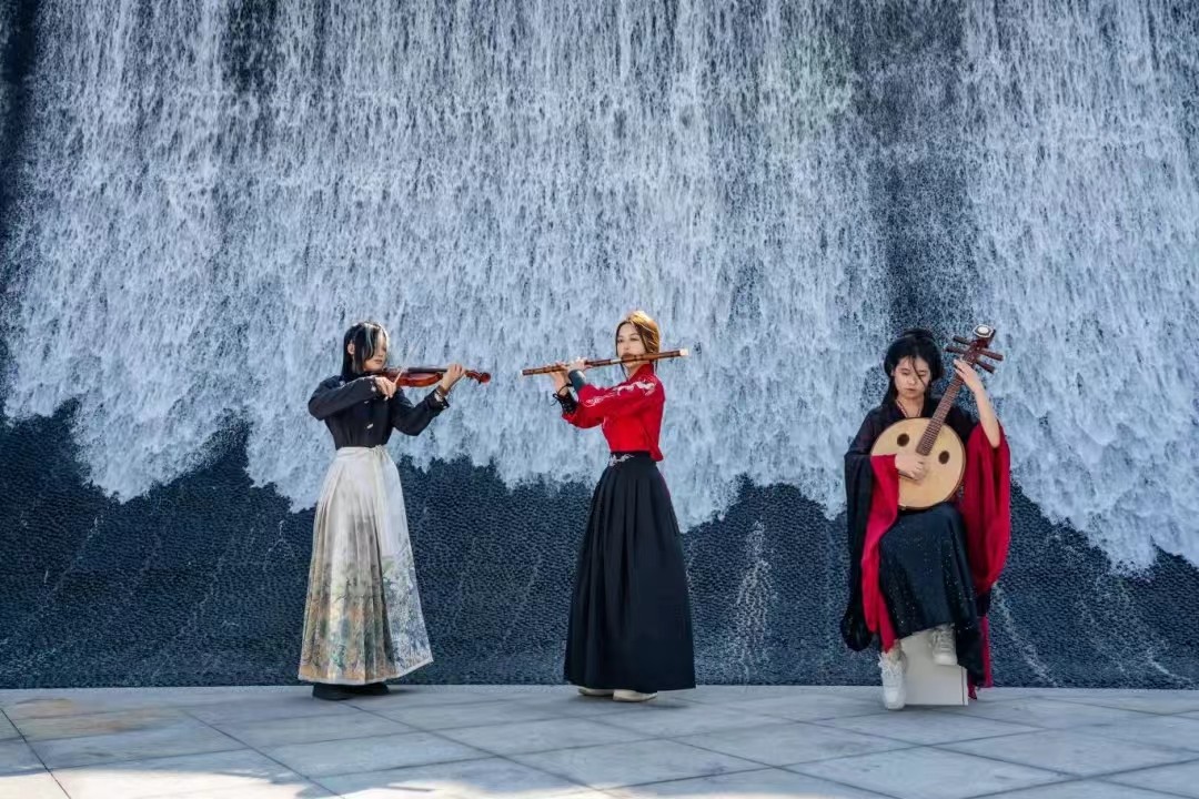 自2023年11月學(xué)校于海寧海商大會(huì)上海寧鹽官景區(qū)管委會(huì)達(dá)成校政企合作意向以來(lái),音樂(lè)學(xué)院多次與海寧鹽官古城股份有限公司進(jìn)行合作內(nèi)容的商洽,并根據(jù)景區(qū)實(shí)際需要于9月8日、9月30日分兩批組織30余名師生前往海寧鹽官古鎮(zhèn)景區(qū)開(kāi)展為期半個(gè)月的演出。同學(xué)們通過(guò)乘舟長(zhǎng)歌、古窗西韻、往事金曲、管弦樂(lè)/民樂(lè)/流行樂(lè)快閃演奏等形式,配合古鎮(zhèn)景區(qū)圓滿完成潮啟·煥樂(lè)觀潮季的系列活動(dòng)和十一國(guó)慶主題系列活動(dòng),為景區(qū)試營(yíng)業(yè)和壓力測(cè)試的順利結(jié)束作出了努力。演出期間,特別是國(guó)慶黃金周,鹽官古鎮(zhèn)迎來(lái)10萬(wàn)余人次的游客,同學(xué)們精湛的演出,讓所有來(lái)古鎮(zhèn)的游客駐足欣賞,點(diǎn)贊稱道,相關(guān)視頻更是在網(wǎng)絡(luò)上流傳,為鹽官古鎮(zhèn)景區(qū)的線上線下宣傳注入了豐富的內(nèi)容。