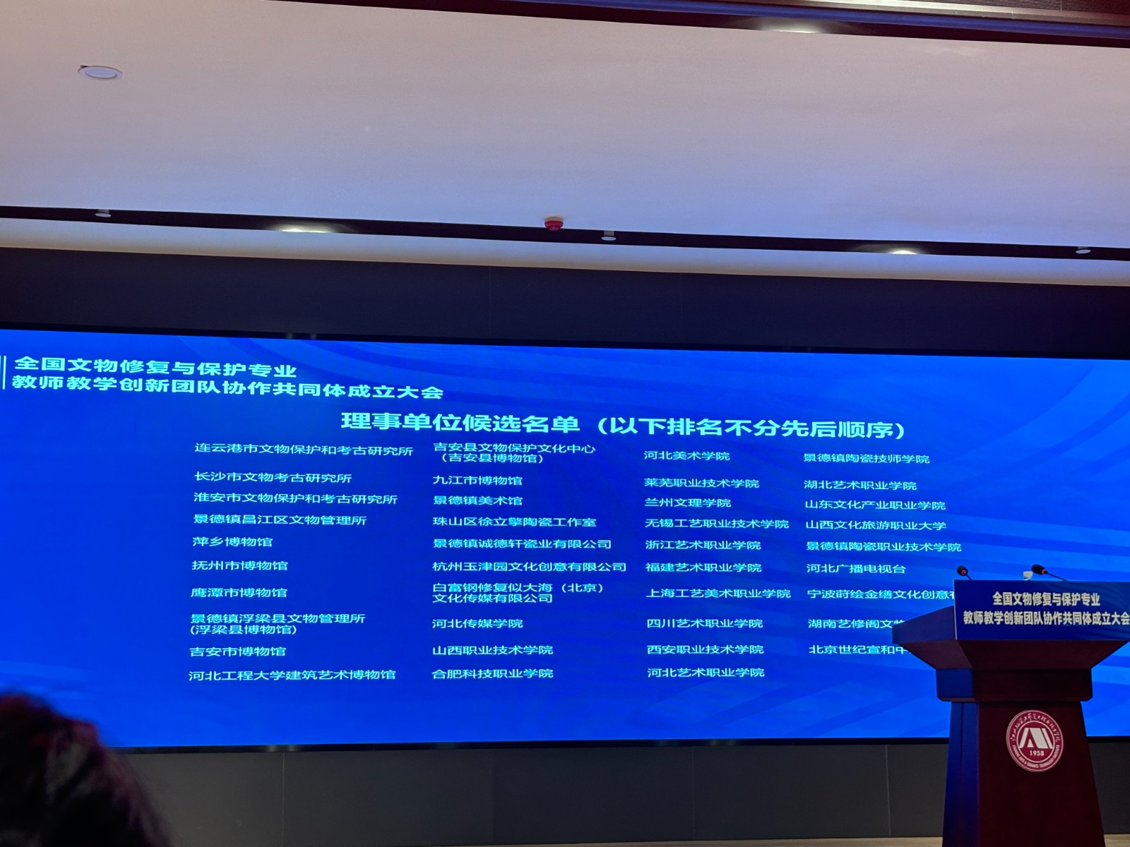 會(huì)上,浙江藝術(shù)職業(yè)學(xué)院當(dāng)選全國(guó)文物修復(fù)與保護(hù)專業(yè)教師教學(xué)創(chuàng)新團(tuán)隊(duì)協(xié)作共同體理事單位,彰顯了我校在文物修復(fù)與保護(hù)專業(yè)的教學(xué)水平與影響力。