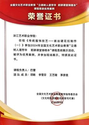 設(shè)計(jì)學(xué)院《傳統(tǒng)服飾技藝——嵌絲硬花扣制作(一)》獲全國(guó)文化藝術(shù)職業(yè)教育課程思政優(yōu)秀案例