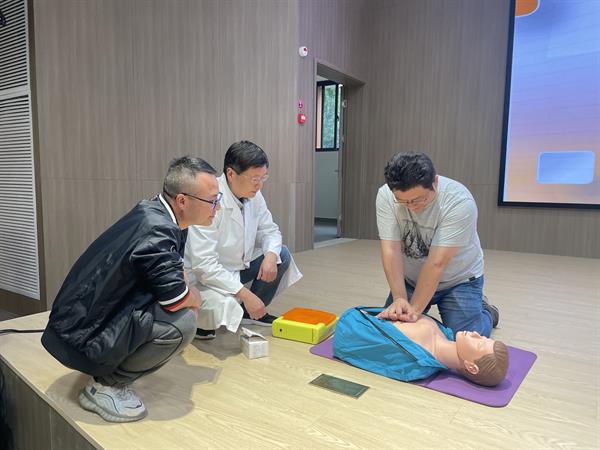 本次培訓(xùn)以提升教職工應(yīng)急救護(hù)知識和技能普及率為目標(biāo),將急救教育融于健康安全管理。課程兼顧技能演示和實(shí)操練習(xí),對心臟按壓和人工通氣方法、部位和具體要求以及AED的使用,進(jìn)行了詳細(xì)的演示,并且將我校目前5臺AED的分布位置重點(diǎn)進(jìn)行了介紹。通過培訓(xùn),提升了參訓(xùn)人員在突發(fā)事件前“能救援”的信心和“會救援”的技能,突出學(xué)以致用和“實(shí)戰(zhàn)”檢驗(yàn),獲得了良好的培訓(xùn)效果。