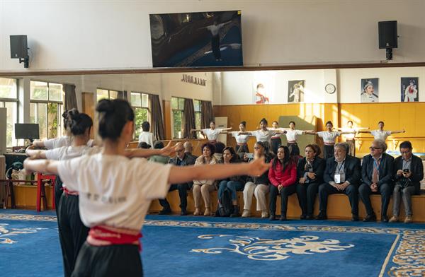 校黨委委員、副校長徐芳代表學(xué)校迎接了代表團(tuán)。代表團(tuán)先后參訪了戲曲學(xué)院、音樂學(xué)院、舞蹈學(xué)院和手工藝學(xué)院。在參觀過程中,代表團(tuán)成員對學(xué)校的教學(xué)設(shè)施、師資力量和學(xué)生作品給予了高度評價,并與各學(xué)院負(fù)責(zé)人就教育教學(xué)、科研創(chuàng)新等方面進(jìn)行了深入交流。