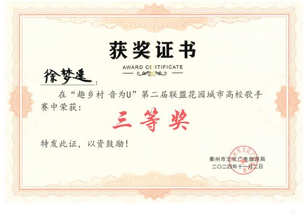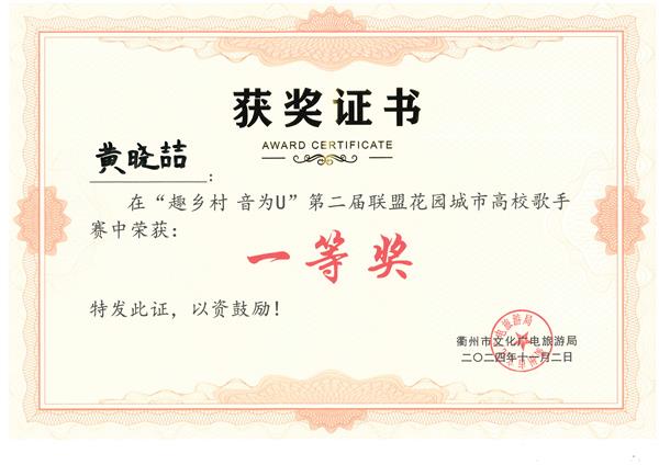 比賽匯聚了來自南昌大學、衢州學院、黃山學院、浙江藝術(shù)職業(yè)學院的38名選手參與初賽,最終15名選手晉級。我校選送了13名選手參賽,其中7名選手晉級決賽。經(jīng)過激烈角逐,我校參賽隊獲得了一等獎1名、二等獎1名、三等獎5名的優(yōu)異成績,音樂學院黃曉喆獲大賽一等獎第一名的好成績。